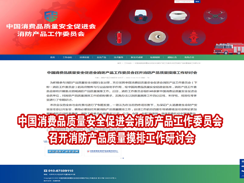 中國消費品質(zhì)量安全促進會消防產(chǎn)品工作委員會(下稱:中消會消防產(chǎn)品工作委員會)致力于有效整合消防產(chǎn)品行業(yè)會員的各類資源,為消防產(chǎn)品的生產(chǎn)、銷售與使用搭建全方位.........