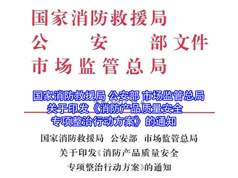 2024年7月3日,國家消防救援局、公安部、市場監(jiān)管總局印發(fā)了《消防產(chǎn)品質(zhì)量安全專項整治行動方案》,《方案》明確以下主要內(nèi)容: 一、整治重點: (一)重.........