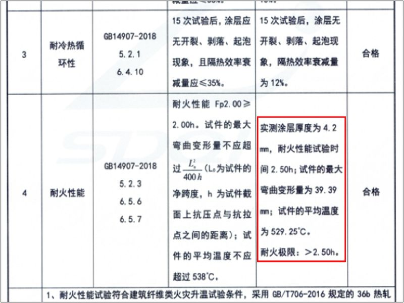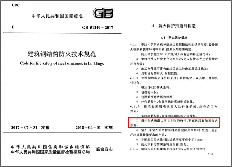 目前,確實一些防火涂料生產(chǎn)廠家生產(chǎn)的膨脹型鋼結構防火涂料,其型號中,耐火極限標明為“Fp2.00”,而型式試驗報告中載明的耐火時間超過了2.00h,甚至達到了3.00h以上。同時,這些防火涂料還通過了國家應急管理部指定認證機構的產(chǎn)品認證。那么,這些耐火時間超過2.00h的膨脹型防火涂料,能不能用于耐火極限1.50h實際工程呢?