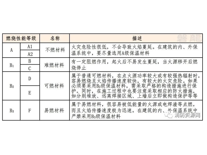 1、依《建筑材料及制品燃燒性能分級》(GB8624-2012,簡稱GB8624)規(guī)定,建筑材料及制品燃燒性能基本分級為A、B1、B2、B3,對應(yīng)歐盟標(biāo)準(zhǔn)分級為A1、A2、B、C、D、E、F。