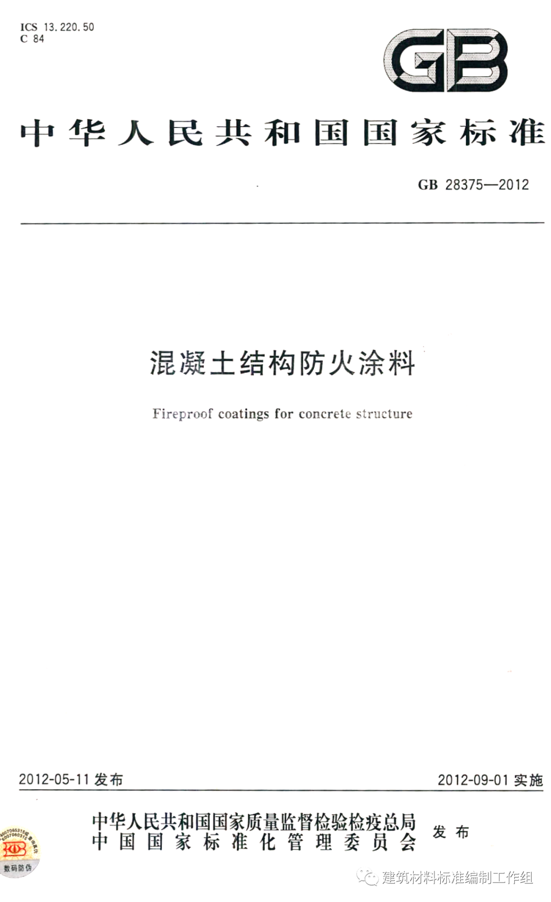 附:GB 28375-2012《混凝土結(jié)構(gòu)防火涂料》