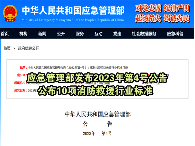 2023年7月19日,中華人民共和國(guó)應(yīng)急管理部發(fā)布2023年第4號(hào)公告,公布《大型商業(yè)綜合體消防安全管理規(guī)則》等10項(xiàng)消防救援行業(yè)標(biāo)準(zhǔn)。